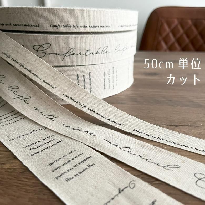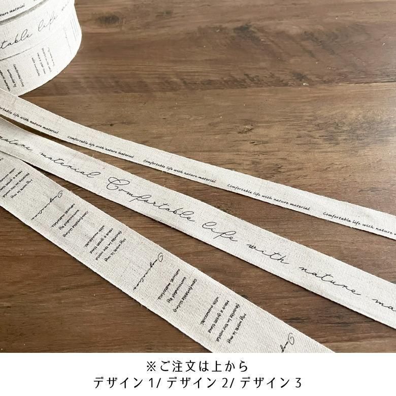 【新デザイン3種追加!】リネンテープ 麻テープ ロゴ 手芸 手芸用 ハンドメイドリボン タグテープ【50cm単位販売】筆記体 商用利用可 タグリボン シンプル おしゃれ ラベル
