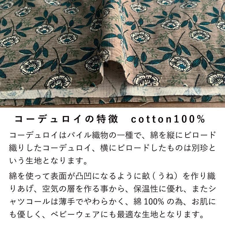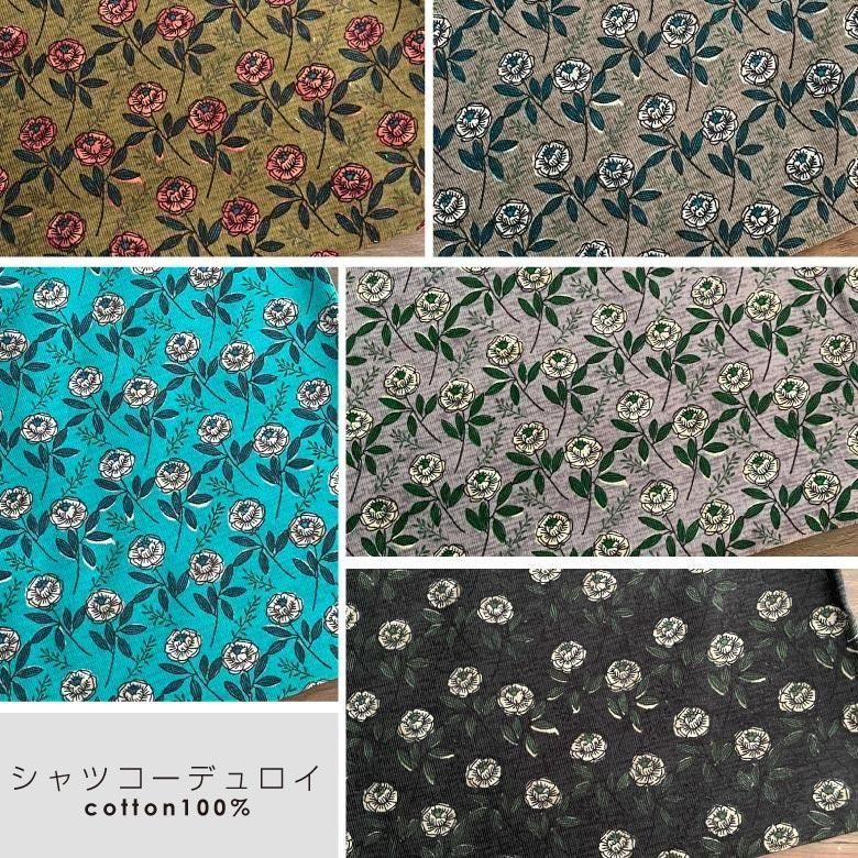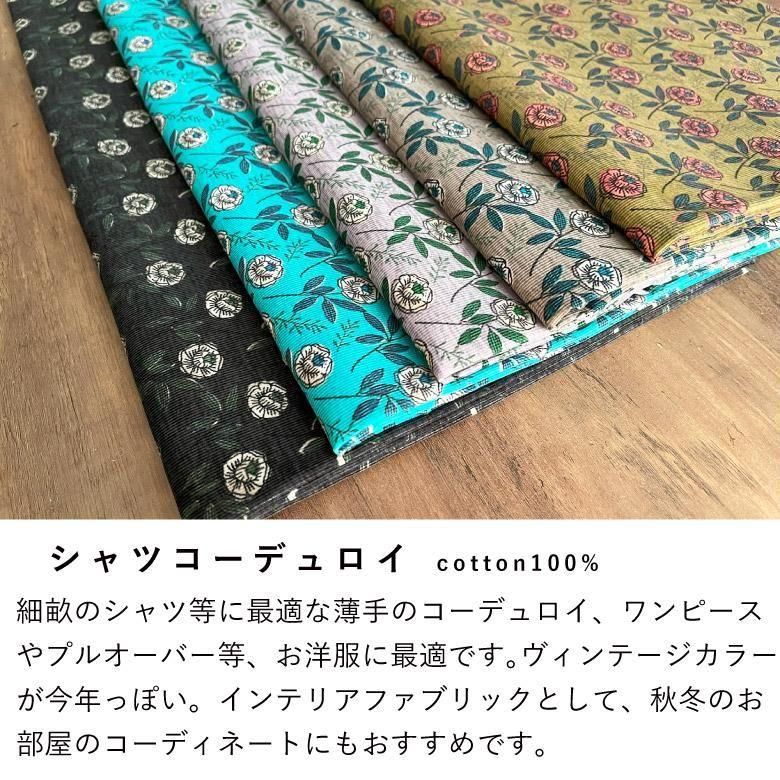 花柄 コーデュロイ ヴィンテージガーデンのシャツコール コール天 50cm単位販売 商用利用可 綿100% 秋冬 手芸 布小物 薄地 服地 生地 布 ヴィンテージガーデンシャツコール50cm