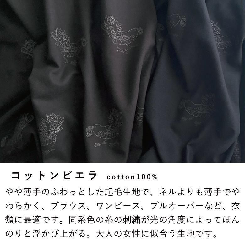 刺繍生地 バード 布 ビエラ 起毛 コットン100% 50cm単位販売 手芸 手作り ハンドメイド 商用利用可 ニット模様 秋冬 鳥 鳥柄 / 刺繍バード