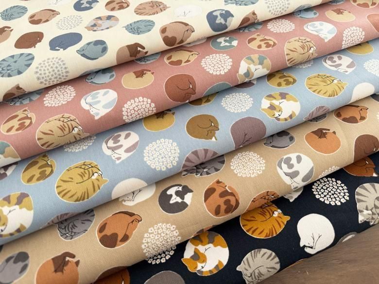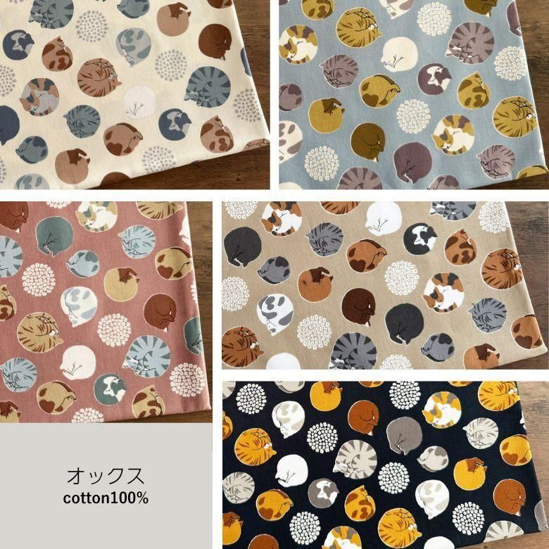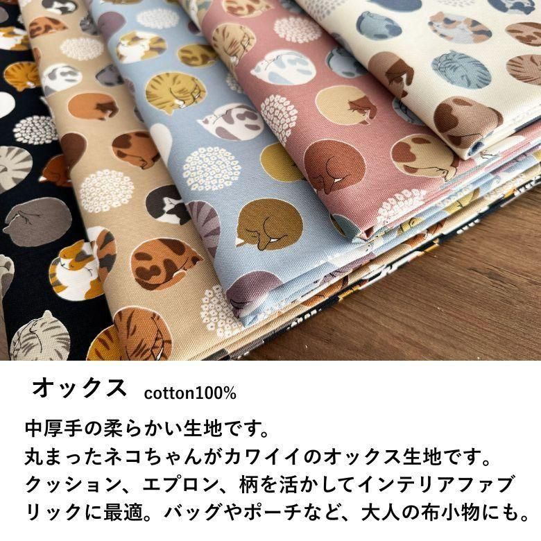 猫柄 生地 布 手まり猫 オックス コットン100% 50cm単位販売 商用利用可 ねこ柄 ネコ おしゃれ 個性的 かわいい/手まり猫50cm