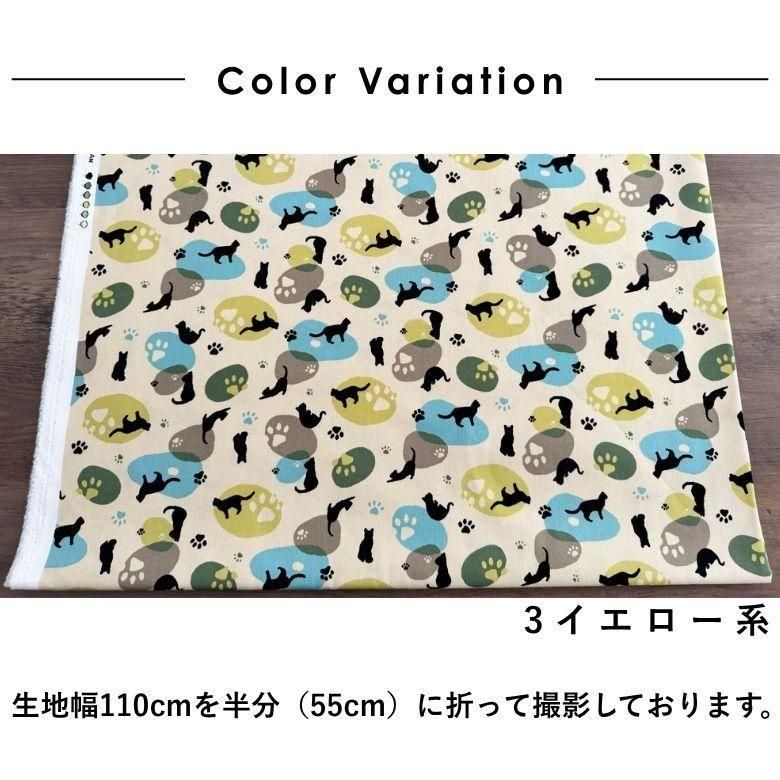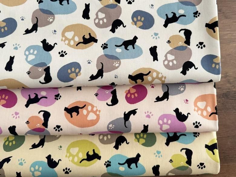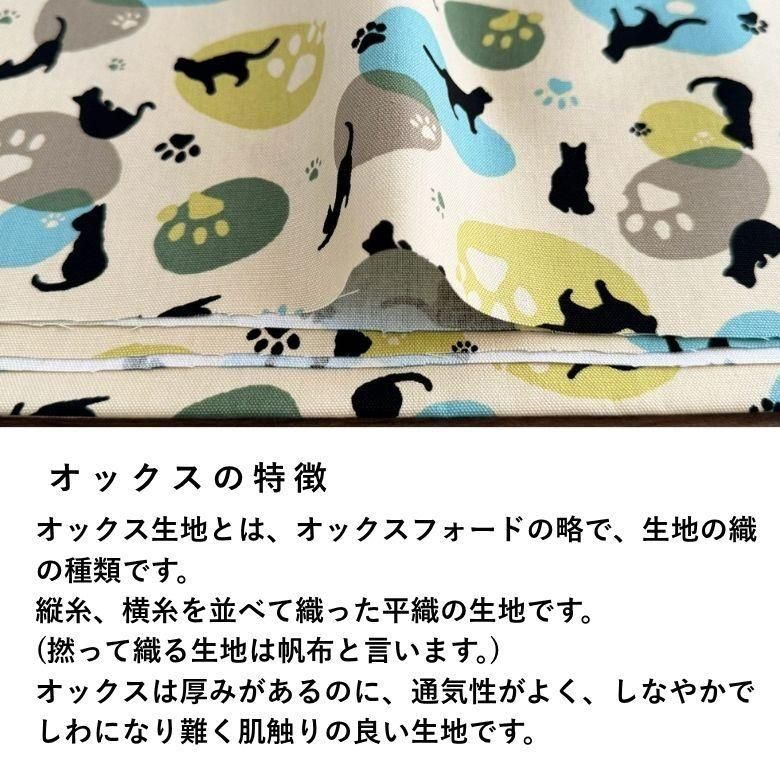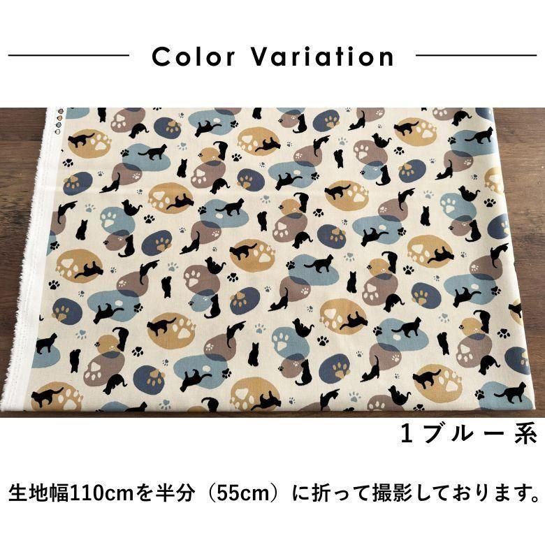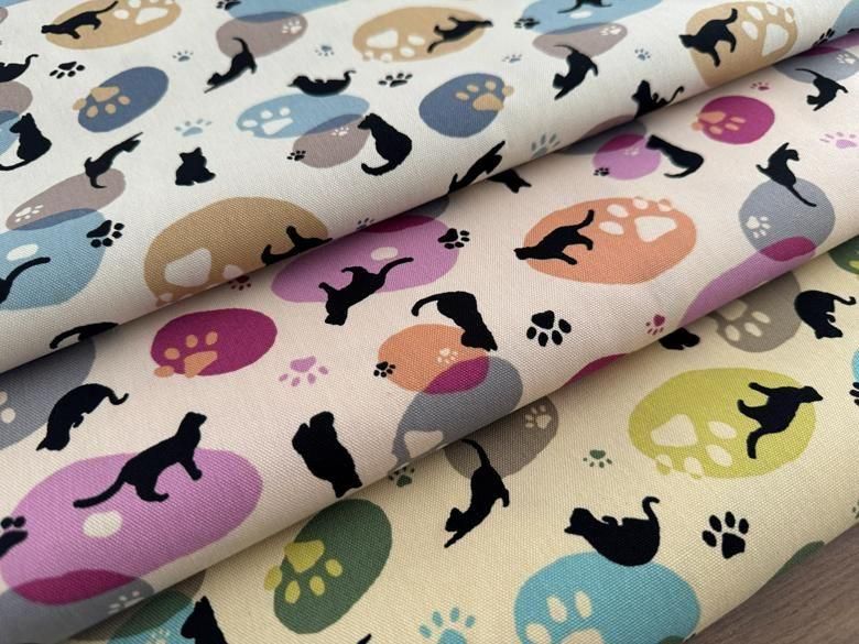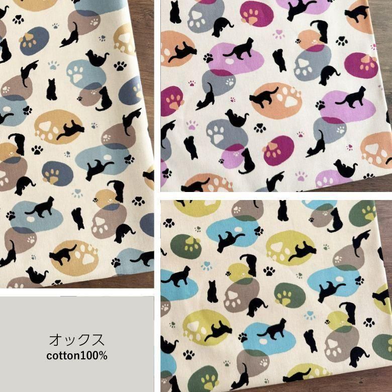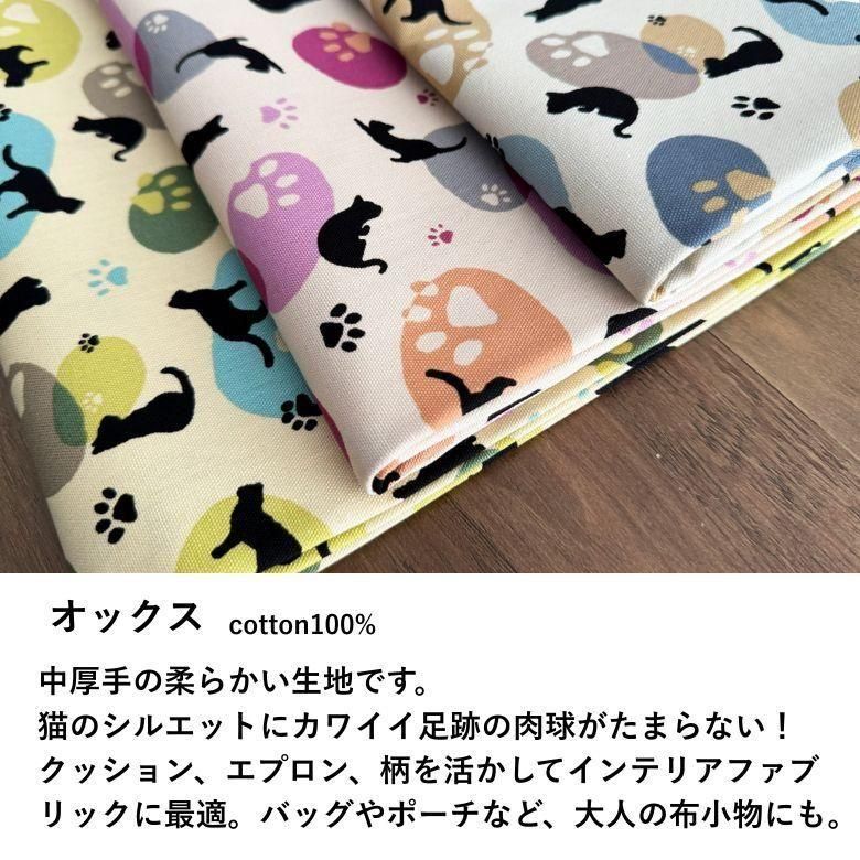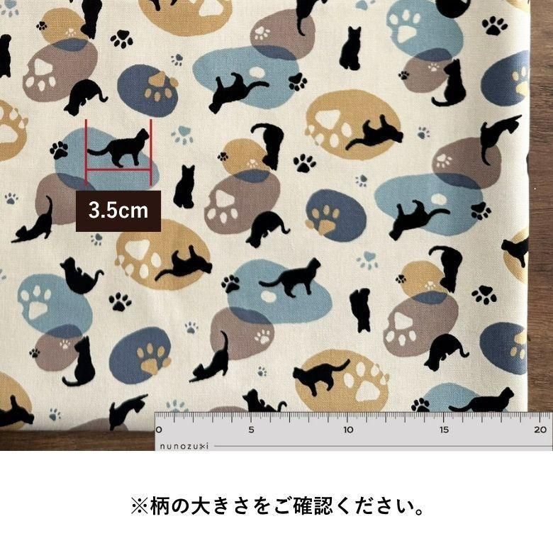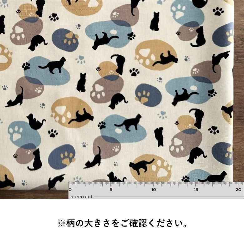 猫柄 生地 布 猫と足跡 オックス コットン100% 50cm単位販売 商用利用可 ねこ柄 ネコ おしゃれ 個性的 肉球 かわいい/猫と足跡50cm