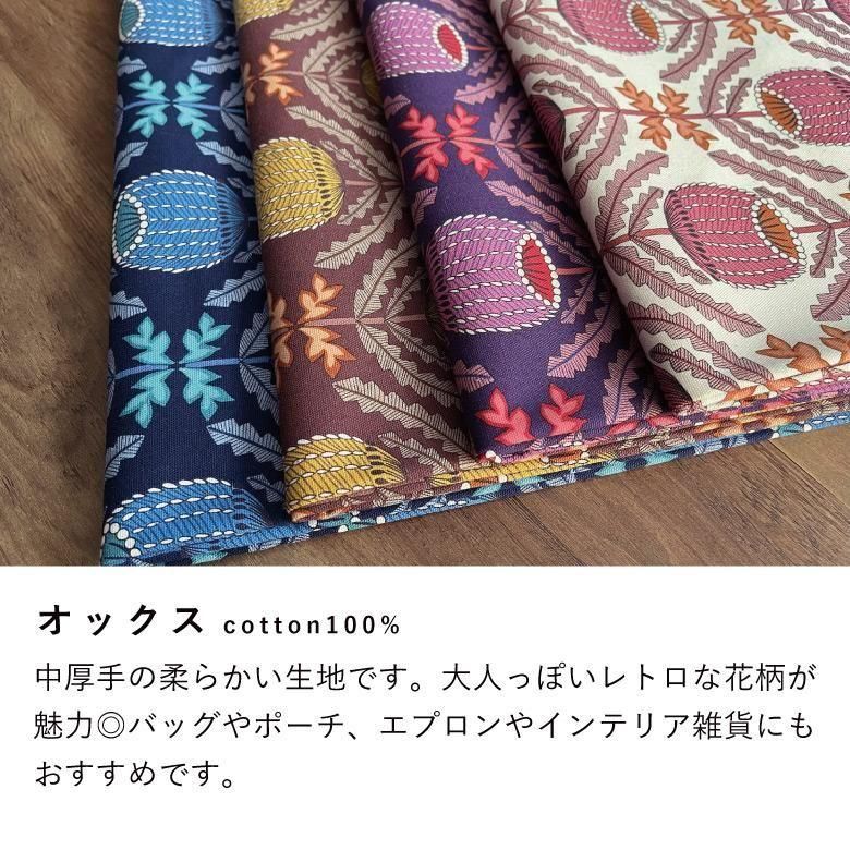 花柄 生地 布 モノフラワー 100%オックス 50cm単位販売 日本製 商用利用可 ハンドメイド 手芸 レトロ おしゃれ/モノフラワー50cm