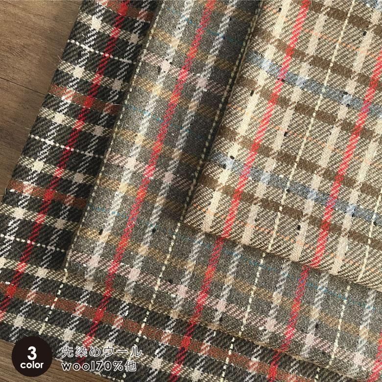 生地 布 W幅150cm 先染めウール タータンチェック 50センチ単位 商用利用可 高級 厚手 ウール ふんわり生地 ヌノズキ 布好き 冬物生地 / 先染めウール50cm