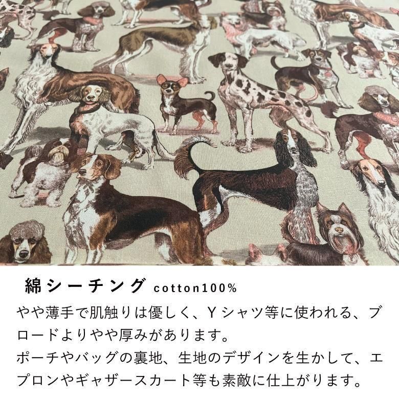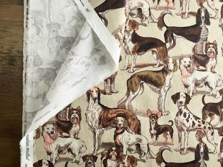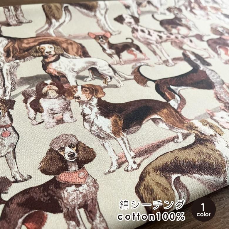 犬柄 生地 布 手描き風Loyal dog 綿シーチング コットン 50cm単位販売 商用利用可 nora.ロイヤルドッグ